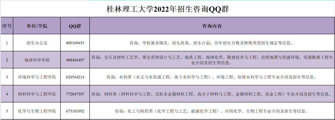 桂林理工大学官方招生咨询群分有: