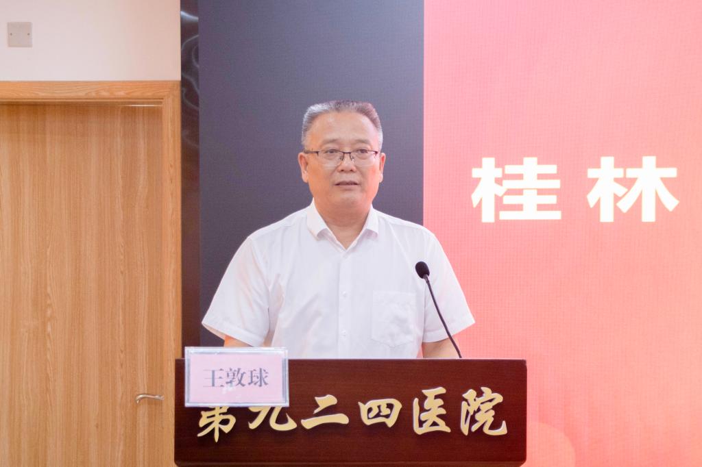 王敦球向桂林理工大学-中国人民解放军联勤保障部队第九二四医院成功签约揭牌表示热烈祝贺,向长期以来关心支持学校建设发展的中国人民解放军联勤保障部队第九二四医院表示衷心感谢。他表示,学校将秉承“融合互补、共谋发展、互利双赢”的原则,以此次签约为契机,进一步增进合作,加强关键核心技术协同攻关、研究生联合培养,不断推动医工深度交叉融合,在学科发展、人才培养、技术协作等方面资源共享,促进双方事业共同发展,携手产出更多具有前瞻性、科学性、切合临床实际的重要科研成果。