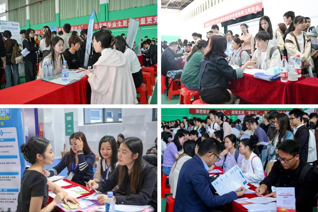 本次双选会共有来自全国17个省、直辖市的近400家单位参加,提供岗位机会数1.1万余个,涉及制造业、互联网、计算机、机械、电子、新能源、地质、建筑、教育、金融、餐饮等多个行业,其中有8个地方人社部门组团带队162家企业进校招聘,现场人才“挤挤”,气氛热烈,学生们满怀期待,积极与用人单位沟通交流,详细了解招聘需求、晋升通道、福利待遇等信息。据统计,共有校内外6000余名学子来到双选会现场,投递简历1.2万余份。