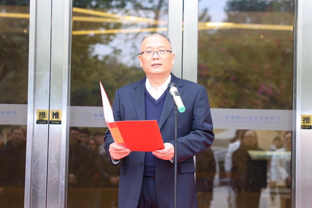 王敦球代表学校对宁济先生的慷慨之举表示诚挚的感谢和崇高的敬意,同时向积极促成本次捐赠活动的莫连旺先生表示感谢。他指出,此次捐赠很好地丰富了博物馆的植物化石馆藏,可以有效地拓展博物馆科普内容。他号召广大师生学习宁济先生心系教育、无私奉献的精神,同时要求地质博物馆充分利用这些珍贵的标本,开展更加形式多样、内容丰富的展览和科普活动,不断扩大影响力,进一步发挥地质博物馆在教学科研和地质科普中的作用,为加快推进学校高水平理工大学建设贡献力量。