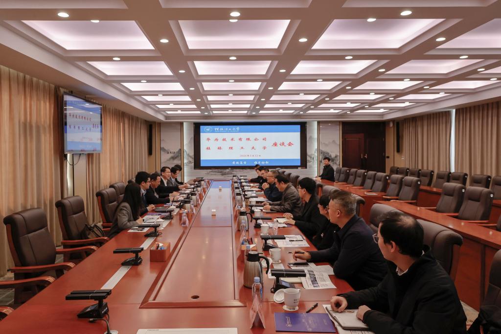 3月12日,华为技术有限公司高级副总裁、首席法务执行官宋柳平率队来我校座谈交流。学校党委书记农毅,党委副书记、校长王敦球热情接待了来访客人。双方在雁山校区开展座谈交流。座谈会由学校党委常委、副校长罗盛锋主持。