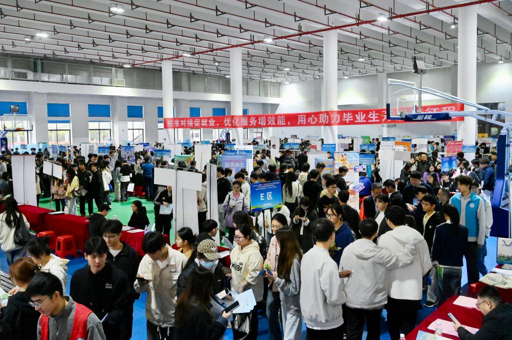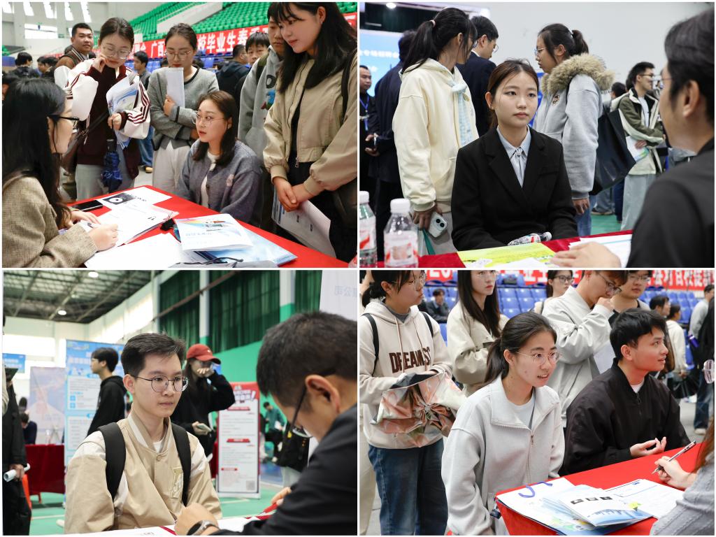 本次双选会共吸引来自全国21个省、直辖市的400余家用人单位参会。现场专门设置有色金属与材料化工行业招聘专区、“百县对百校”招才引智招聘专区、综合招聘专区及就业指导服务专区,岗位涵盖建筑、采矿、计算机、通信、软件、电子、电气、机械、教育、金融等多个行业领域,累计提供就业机会数超1.3万个。本次双选会还有12个地方人社部门组团带队进校招才引智,汇聚中国企业500强、中国制造业企业500强、上市企业及双百企业等优质用人单位,为广大毕业生提供了丰富多元的高质量就业对接平台。据统计,本次活动共有校内外6000余名学生到场参会,投递简历1.2万份。现场氛围热烈、人潮涌动,毕业生主动与企业招聘人员沟通洽谈,详细咨询岗位要求、职业发展空间、薪资待遇等相关信息,充分展现出新时代青年学子朝气蓬勃、昂扬向上的精神风貌。